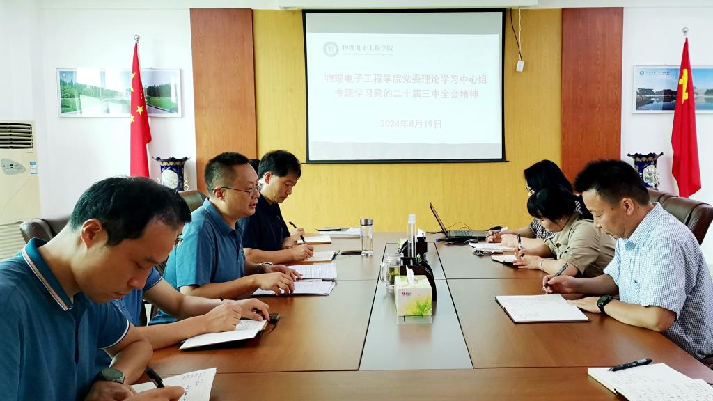 8月19日上午,澳门威尼斯人 党委理论学习中心组在理科楼911会议室召开党的二十届三中全会精神专题学习研讨会。澳门威尼斯人 党委理论学习中心组成员和各党支部书记参加会议。会议由澳门威尼斯人 党委书记方明科主持。