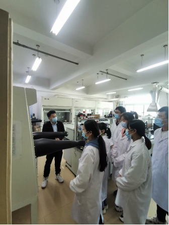 图3. 物电澳门威尼斯人 开展实验室安全教育:刘胜红博士向研究生们讲授实验室安全注意事项,并带领研究生检查实验室仪器安全运行情况
