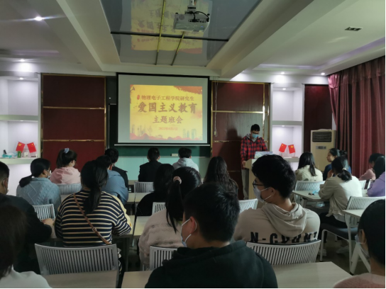 图1. 物电澳门威尼斯人 组织全体在校研究生自发开展“爱国主义教育”主题班会