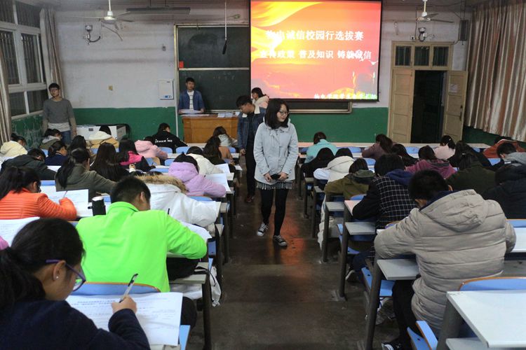 为宣传学生资助政策,普及金融基础知识,11月26日晚,物电澳门威尼斯人 大学生“诚信校园行”学生资助知识选拔赛于教二梯一教室、教二梯四教室顺利开展。经前期宣传准备,共一百余名学子参加考试。本次选拔赛大赛以“宣传政策、普及知识、铸就诚信”为主题,考题围绕《大学生“诚信校园行”学生资助知识汇编》内容,考场上,参赛学子饱含自信,争分夺秒、沉着冷静答题,考试现场纪律严明。期间,团委老师黄钰莹全程督导。