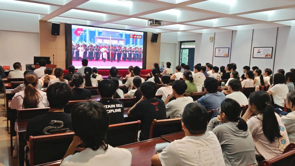阅兵观礼悟初心,砥砺奋进启新程。9月3日上午,澳门威尼斯人 师生齐聚一堂,共同观看纪念中国人民抗日战争暨世界反法西斯战争胜利80周年阅兵仪式直播。这场阅兵不仅带来了视觉上的震撼,更搭建起一座跨越时空的 “对话桥梁”—— 让师生们与抗战先烈隔空对话,与伟大民族精神深度共鸣。当威武的方阵迈着整齐的步伐通过检阅台,当先进的装备展示着国家实力时,同学们真切感受到祖国的繁荣强大,心中涌起强烈的民族自豪感与自信心。