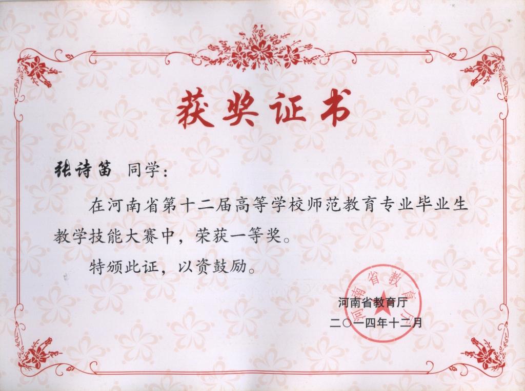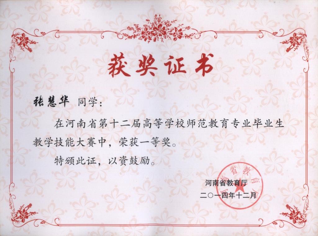 2014-河南省第十二届教学技能大赛证书