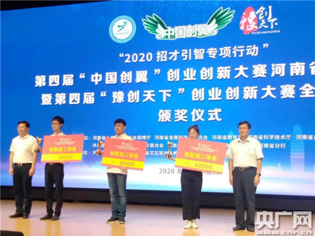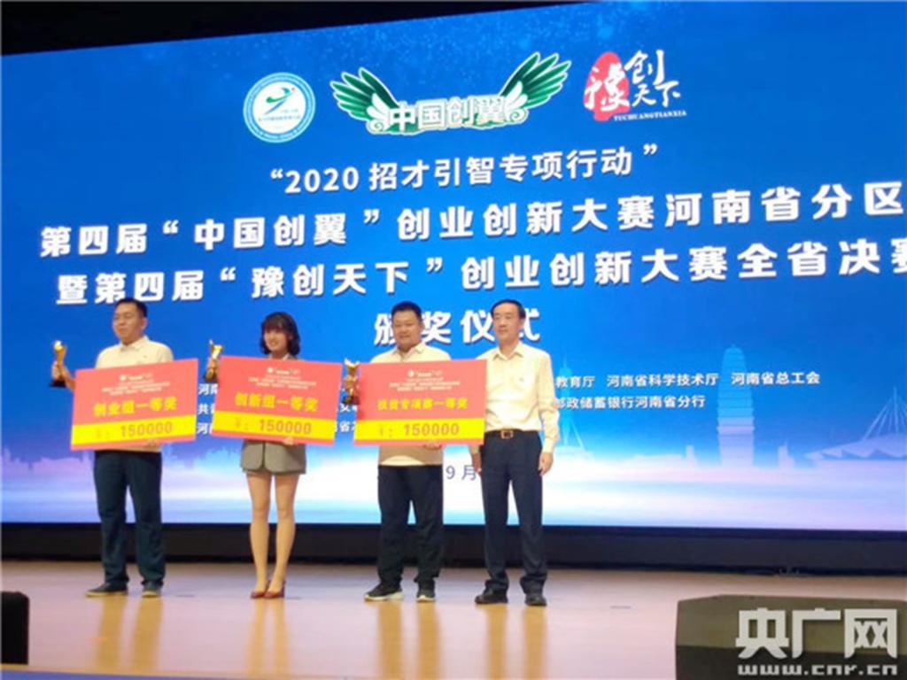 911日,第四届“豫创天下”创业创新大赛一、二、三等获奖名单出炉,最高奖金为15万元,扶贫专项入选大奖。河南省副省长戴柏华为一等奖颁奖。